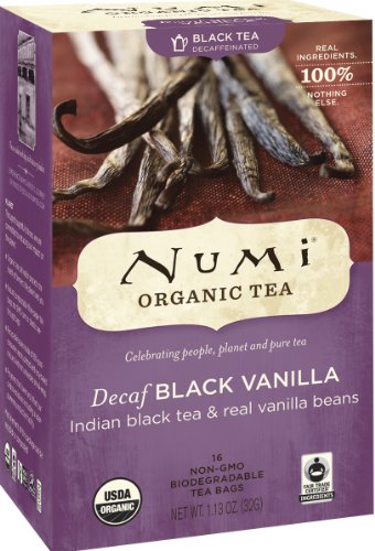 If you want for the top suggested Numi Organic Tea Decaf Black Vanilla, Full Leaf Decaf Black Tea, 16-Count Tea Bags (Pack of 3) is actually our recommendation- Inspired by an ancient Aztec culinary secret, Numi has chosen aromatic whole vanilla beans to blend with premium organic black tea. As Decaf Black Vanilla steeps a vibrant bronzy hue, its seductive fragrance, flowery yet familiar, flirts with your senses. Magnificently smooth, exotic vanilla harmonizes with black tea for a creamy, rich and satisfying cup. This tea grows in northern India on a bio-dynamic and Fair Trade garden surrounded by beautiful tropical forests. It is decaffeinated by a rev